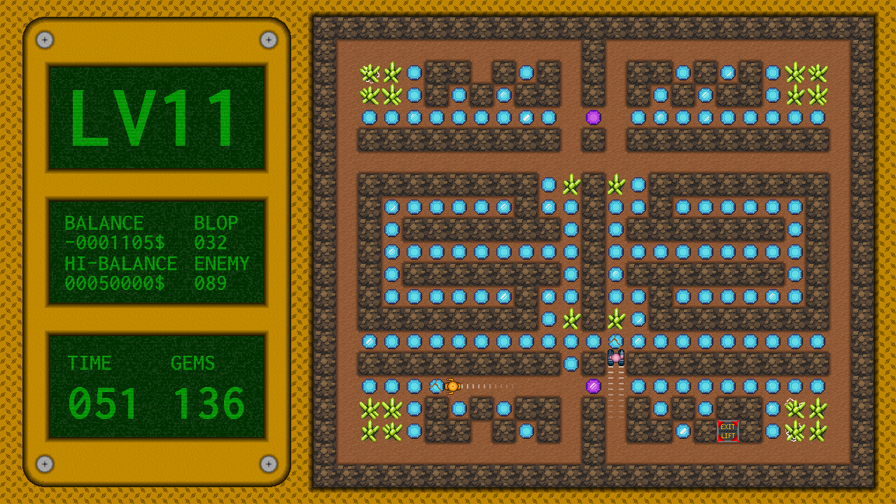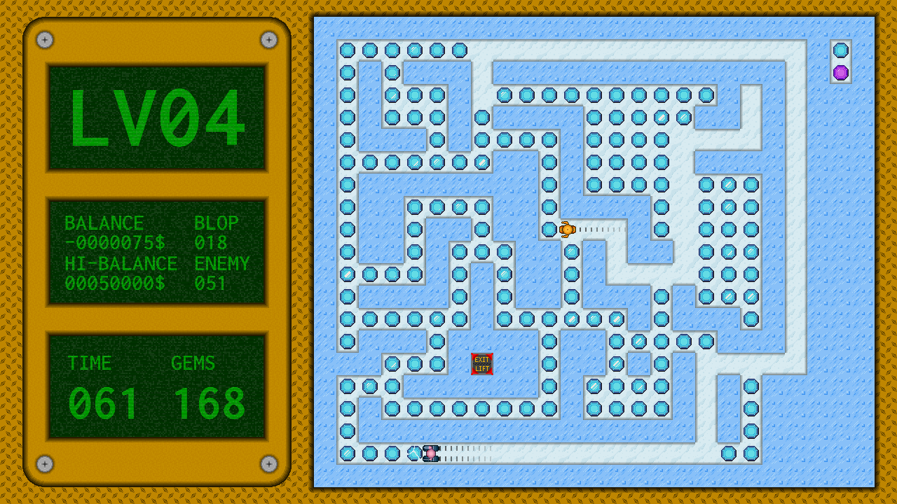 El complejo está compuesto por 15 minas diferentes y Blop deberá recolectar la mayor cantidad posible de recursos naturales, en forma de gemas azules, antes de alcanzar la salida de la mina. La puerta de salida permanecerá cerrada hasta que se recolecten todos los recursos.